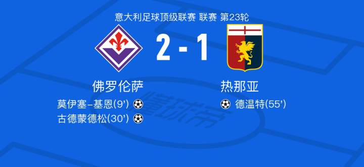 佛罗伦萨vs热那亚比赛球员得分排名公布